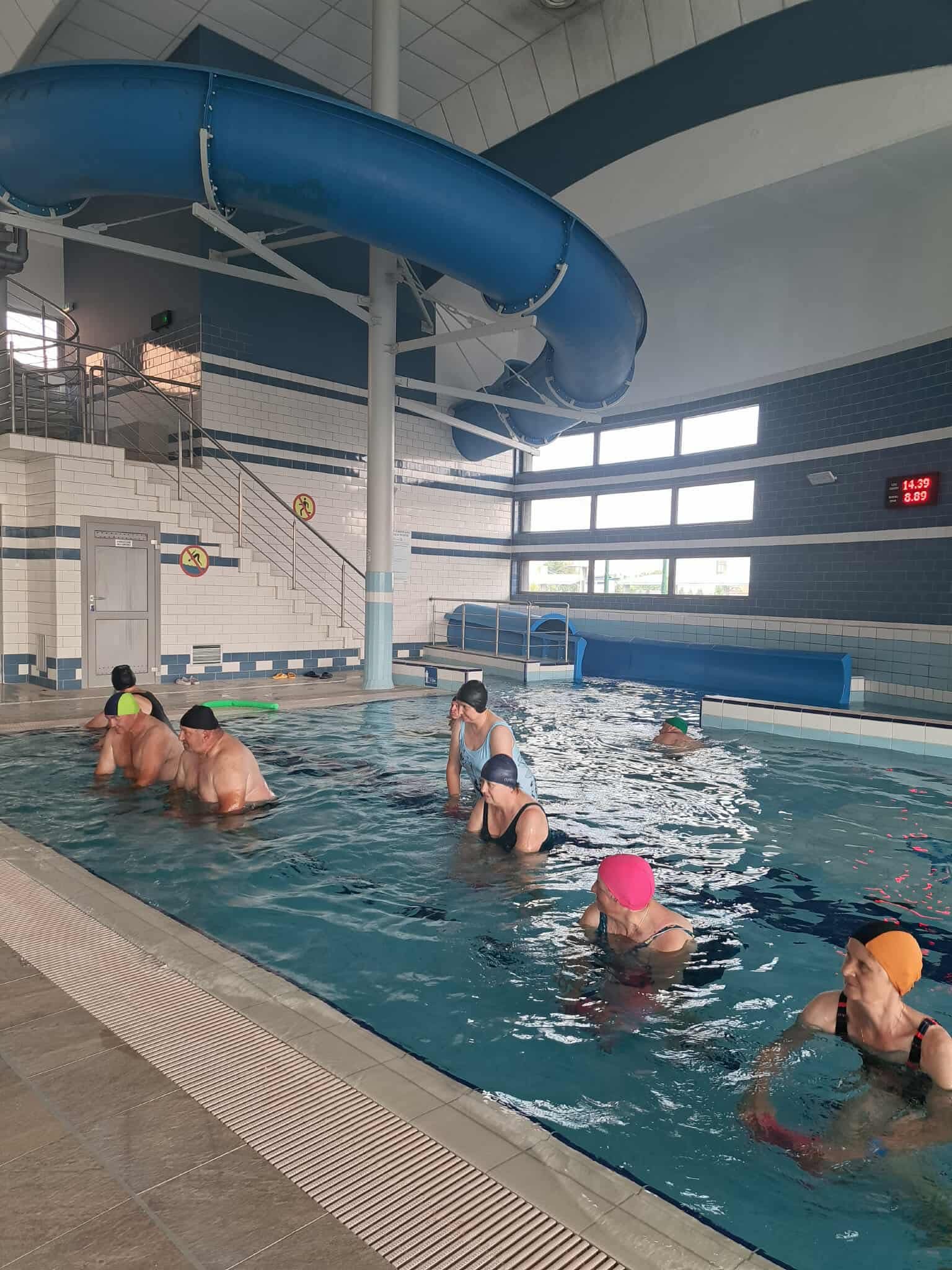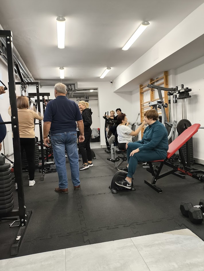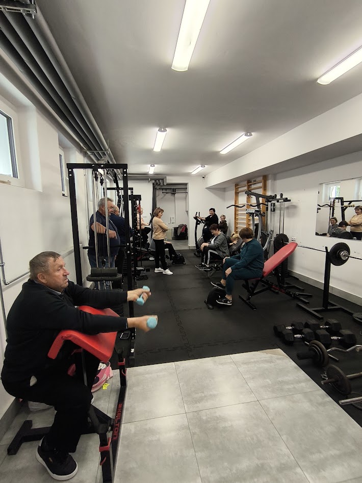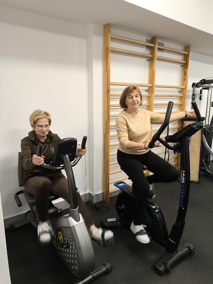 Korzystają z wyjazdów na basen, zajęciach z fizjoterapeutą, zajęciach na siłowni, nordic walking.