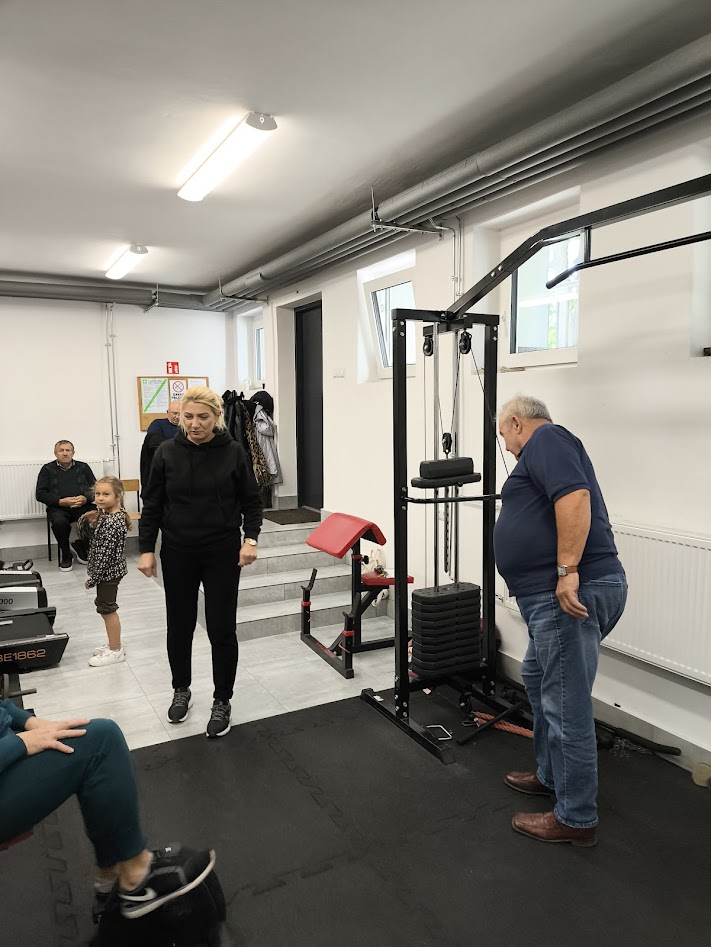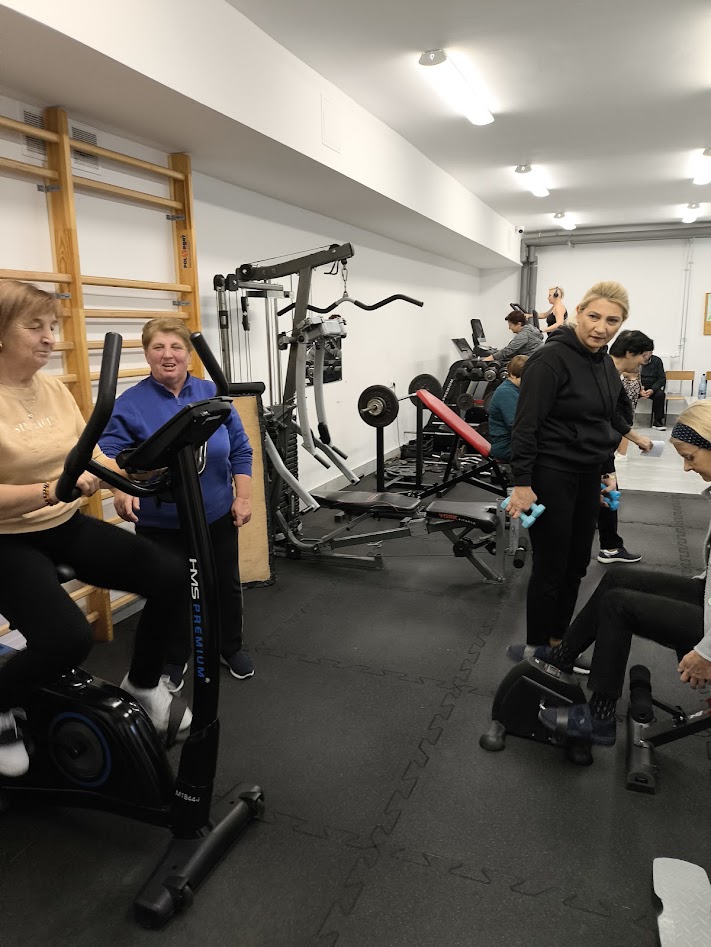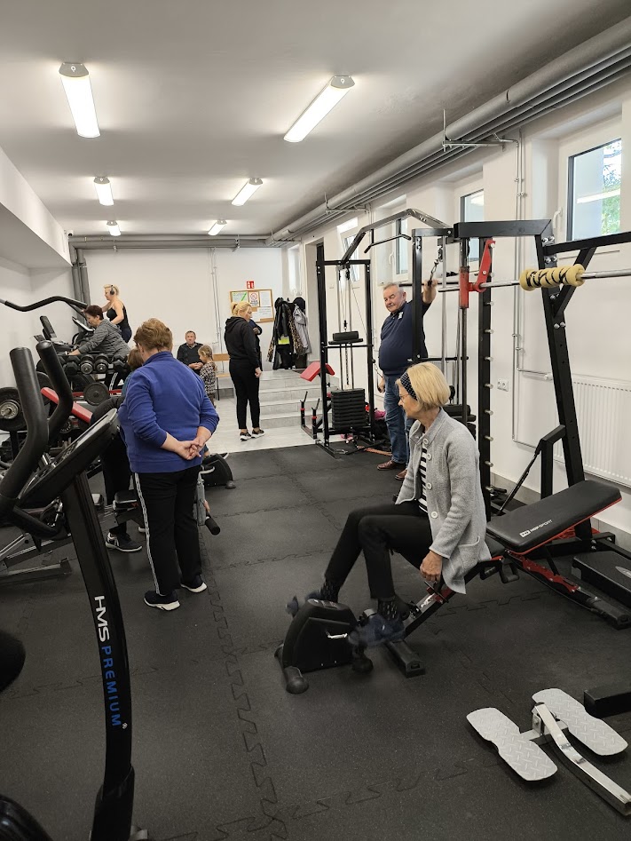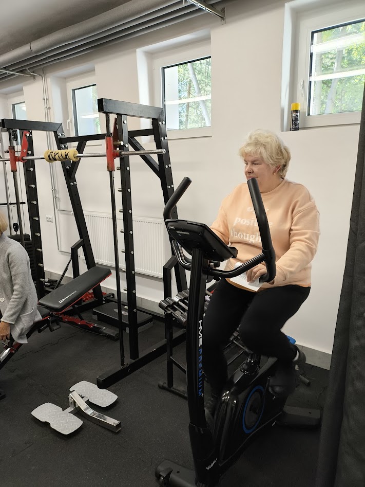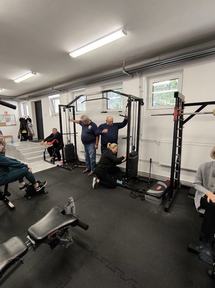 Korzystają z wyjazdów na basen, zajęciach z fizjoterapeutą, zajęciach na siłowni, nordic walking.